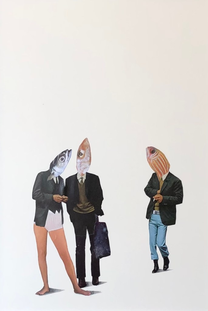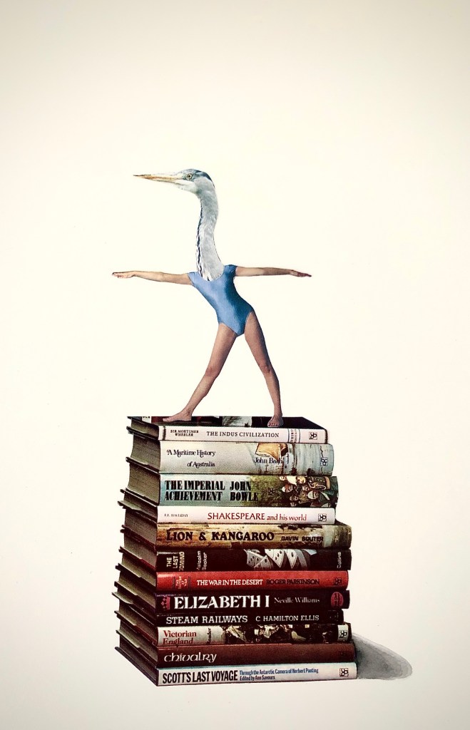 Influenced by time poverty (specifically having to make artwork on the fly due to parenting and working), the imagination of my six year old, the flights of fancy I have while washing the dishes, and my roaming monkey mind, I have been making these in little snatched moments – after tea, before school pickup, in the wee hours of the morning before the demands of the day clamour for attention at my studio door. Artistic influences include: Hannah Hoch, Man Ray, Deborah Kelly and the Exquisite Corpse game of the Surrealists.