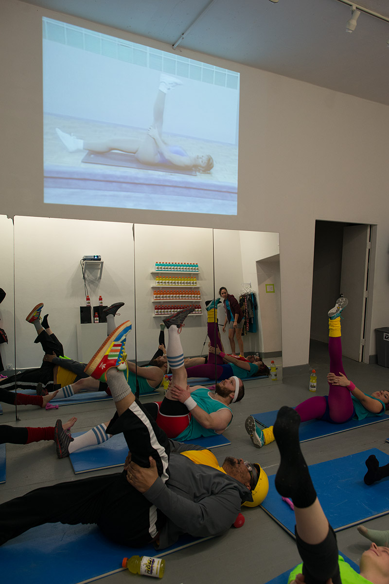 “The Now! Body – A One Night, Life Changing, All-over Body Xtreme New Power Revolution” was an interactive installation which encouraged participation in a two hour fitness video, promising to entirely overhaul your physical health (implicitly failing to deliver this promise). http://thenowbody.tumblr.com/
