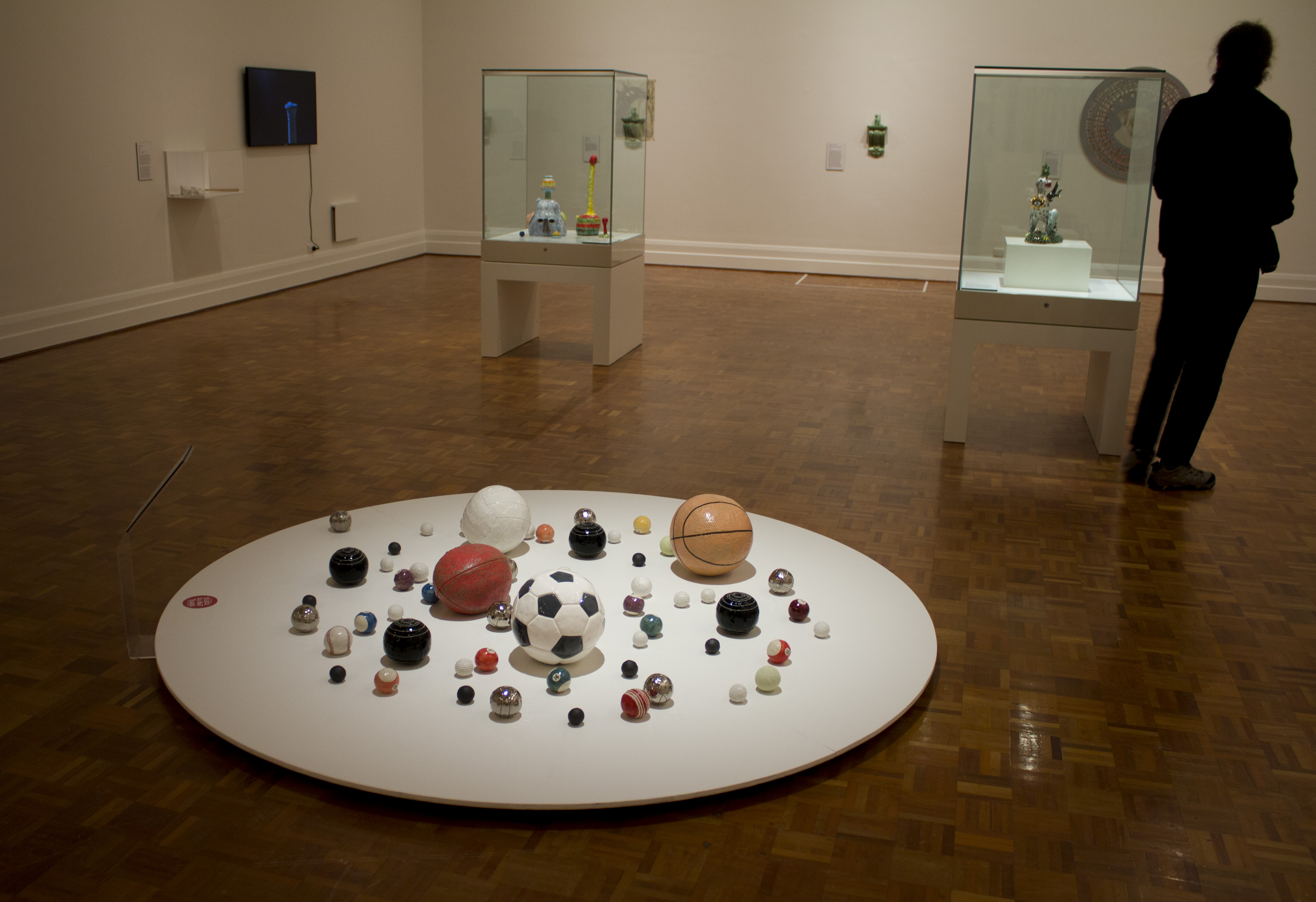 I made these fetish objects which are ceramic and shiny, focussing on the generalised iconic nature of the sports ball, and the nature of the ball as a power object.